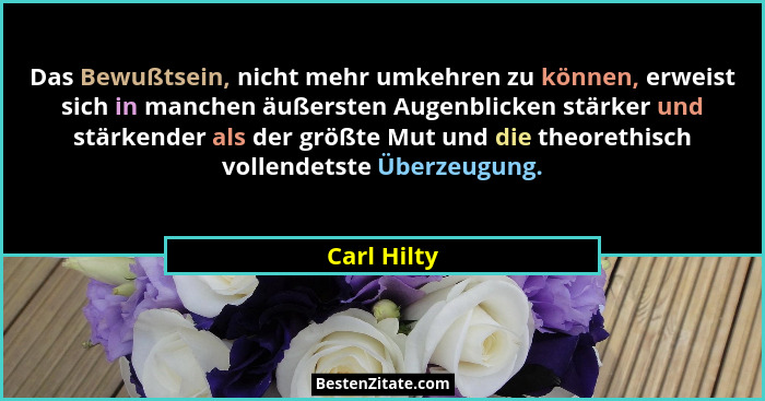 Das Bewußtsein, nicht mehr umkehren zu können, erweist sich in manchen äußersten Augenblicken stärker und stärkender als der größte Mut und die theorethisch vollendetste Überzeugung.