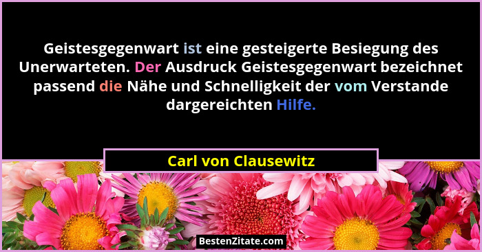 Geistesgegenwart ist eine gesteigerte Besiegung des Unerwarteten. Der Ausdruck Geistesgegenwart bezeichnet passend die Nähe und Schnelligkeit der vom Verstande dargereichten Hilfe.