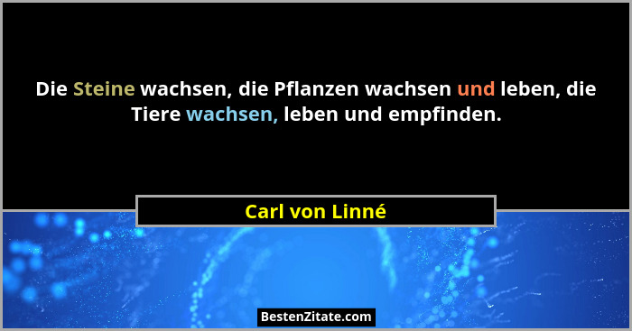 Die Steine wachsen, die Pflanzen wachsen und leben, die Tiere wachsen, leben und empfinden.