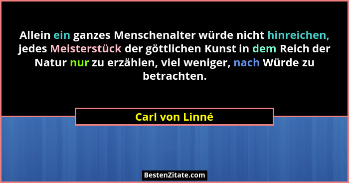 Allein ein ganzes Menschenalter würde nicht hinreichen, jedes Meisterstück der göttlichen Kunst in dem Reich der Natur nur zu erzählen, viel weniger, nach Würde zu betrachten.