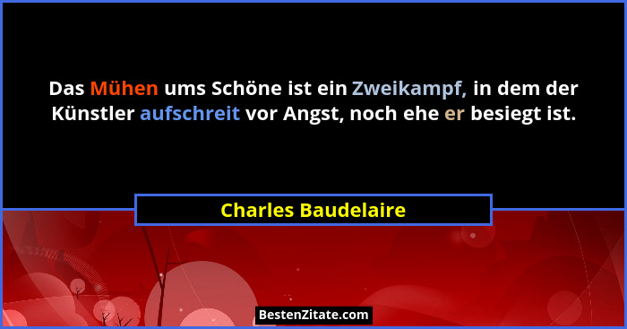 Das Mühen ums Schöne ist ein Zweikampf, in dem der Künstler aufschreit vor Angst, noch ehe er besiegt ist.