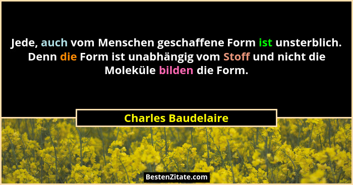 Jede, auch vom Menschen geschaffene Form ist unsterblich. Denn die Form ist unabhängig vom Stoff und nicht die Moleküle bilden die Form.