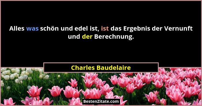 Alles was schön und edel ist, ist das Ergebnis der Vernunft und der Berechnung.