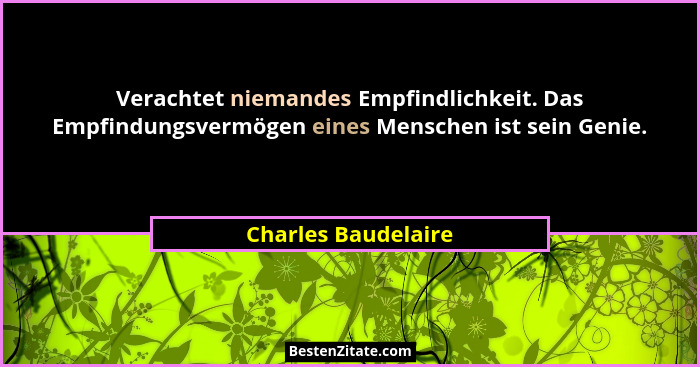 Verachtet niemandes Empfindlichkeit. Das Empfindungsvermögen eines Menschen ist sein Genie.
