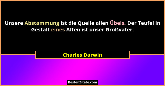 Unsere Abstammung ist die Quelle allen Übels. Der Teufel in Gestalt eines Affen ist unser Großvater.