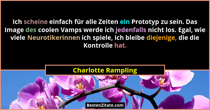 Ich scheine einfach für alle Zeiten ein Prototyp zu sein. Das Image des coolen Vamps werde ich jedenfalls nicht los. Egal, wie viele Neurotikerinnen ich spiele, ich bleibe diejenige, die die Kontrolle hat.
