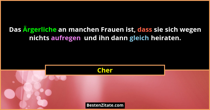 Das Ärgerliche an manchen Frauen ist, dass sie sich wegen nichts aufregen und ihn dann gleich heiraten.