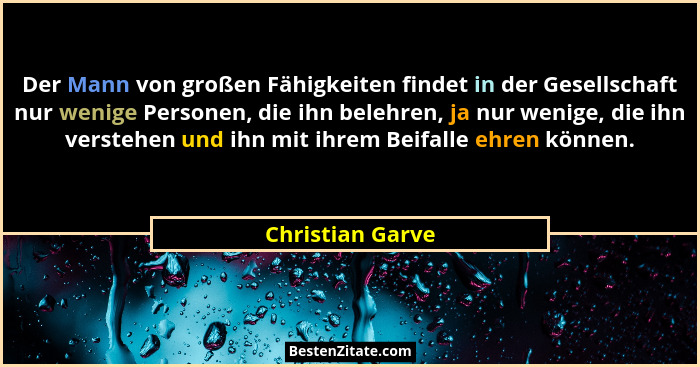 Der Mann von großen Fähigkeiten findet in der Gesellschaft nur wenige Personen, die ihn belehren, ja nur wenige, die ihn verstehen und ihn mit ihrem Beifalle ehren können.