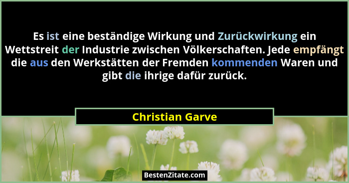 Es ist eine beständige Wirkung und Zurückwirkung ein Wettstreit der Industrie zwischen Völkerschaften. Jede empfängt die aus den Werkstätten der Fremden kommenden Waren und gibt die ihrige dafür zurück.