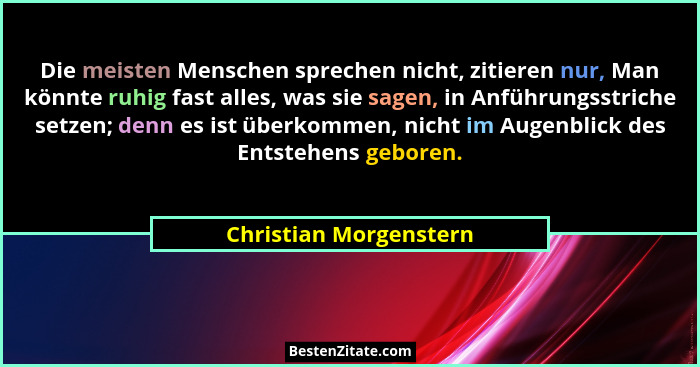 Die meisten Menschen sprechen nicht, zitieren nur, Man könnte ruhig fast alles, was sie sagen, in Anführungsstriche setzen; denn es ist überkommen, nicht im Augenblick des Entstehens geboren.