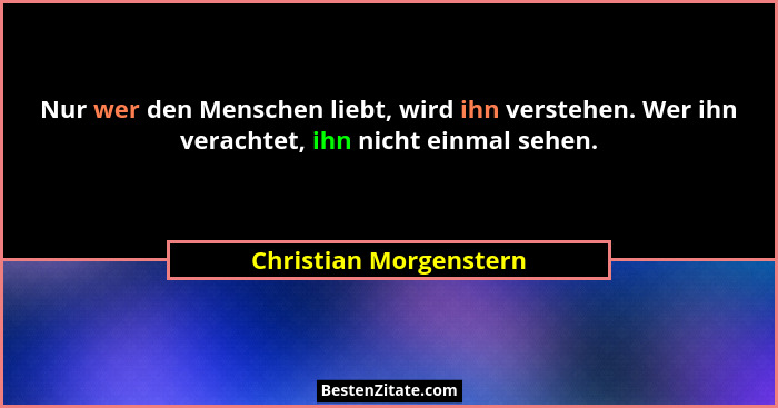 Nur wer den Menschen liebt, wird ihn verstehen. Wer ihn verachtet, ihn nicht einmal sehen.