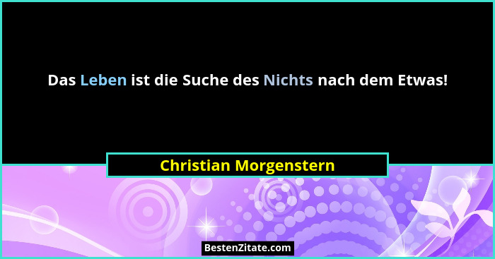 Das Leben ist die Suche des Nichts nach dem Etwas!