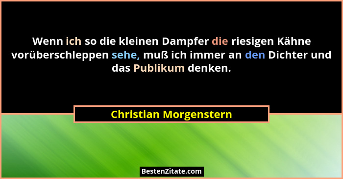 Wenn ich so die kleinen Dampfer die riesigen Kähne vorüberschleppen sehe, muß ich immer an den Dichter und das Publikum denken.