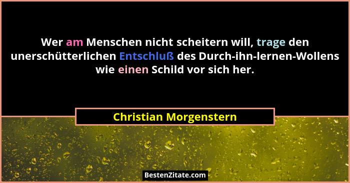 Wer am Menschen nicht scheitern will, trage den unerschütterlichen Entschluß des Durch-ihn-lernen-Wollens wie einen Schild vor sich her.