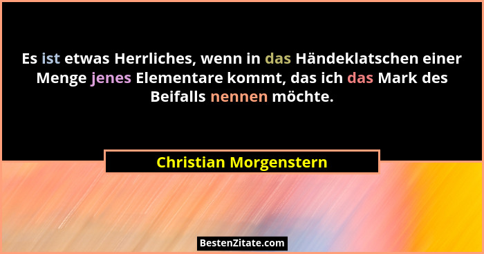 Es ist etwas Herrliches, wenn in das Händeklatschen einer Menge jenes Elementare kommt, das ich das Mark des Beifalls nennen möchte.