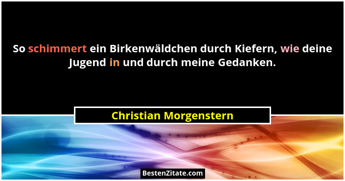 So schimmert ein Birkenwäldchen durch Kiefern, wie deine Jugend in und durch meine Gedanken.