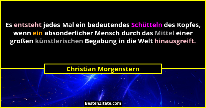 Es entsteht jedes Mal ein bedeutendes Schütteln des Kopfes, wenn ein absonderlicher Mensch durch das Mittel einer großen künstlerischen Begabung in die Welt hinausgreift.