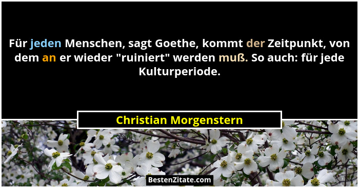 Für jeden Menschen, sagt Goethe, kommt der Zeitpunkt, von dem an er wieder "ruiniert" werden muß. So auch: für jede Kulturperiode.
