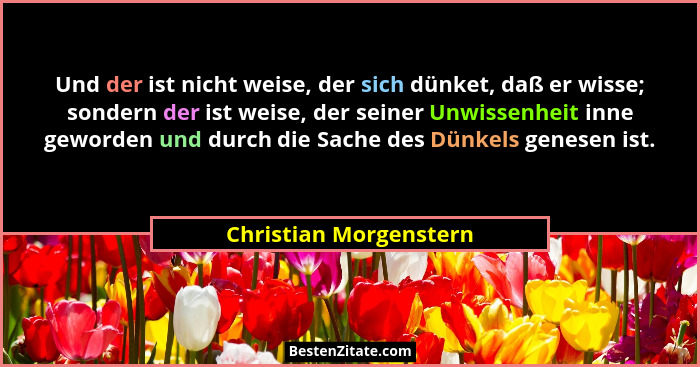 Und der ist nicht weise, der sich dünket, daß er wisse; sondern der ist weise, der seiner Unwissenheit inne geworden und durch die Sache des Dünkels genesen ist.