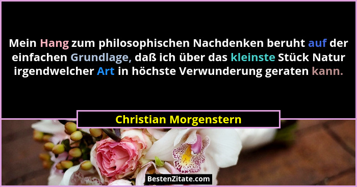 Mein Hang zum philosophischen Nachdenken beruht auf der einfachen Grundlage, daß ich über das kleinste Stück Natur irgendwelcher Art in höchste Verwunderung geraten kann.