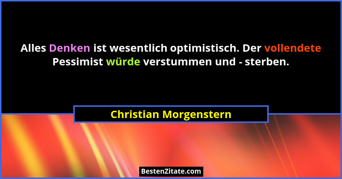 Alles Denken ist wesentlich optimistisch. Der vollendete Pessimist würde verstummen und - sterben.