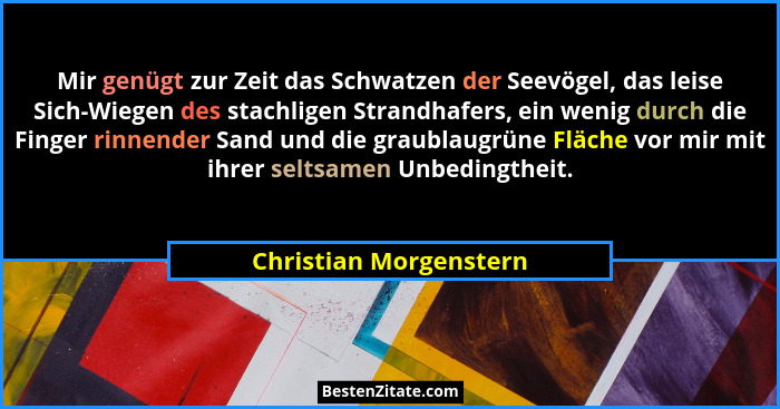 Mir genügt zur Zeit das Schwatzen der Seevögel, das leise Sich-Wiegen des stachligen Strandhafers, ein wenig durch die Finger rinnender Sand und die graublaugrüne Fläche vor mir mit ihrer seltsamen Unbedingtheit.