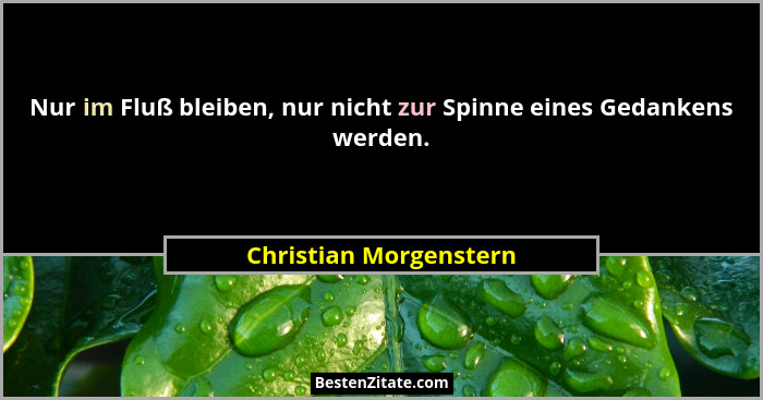 Nur im Fluß bleiben, nur nicht zur Spinne eines Gedankens werden.