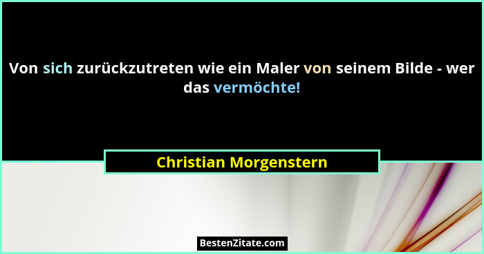 Von sich zurückzutreten wie ein Maler von seinem Bilde - wer das vermöchte!