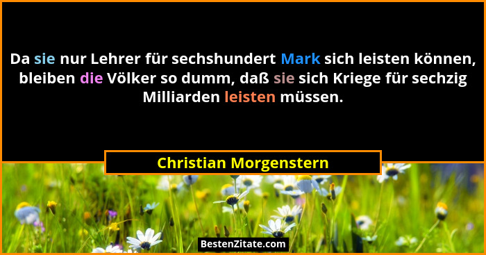 Da sie nur Lehrer für sechshundert Mark sich leisten können, bleiben die Völker so dumm, daß sie sich Kriege für sechzig Milliarden leisten müssen.