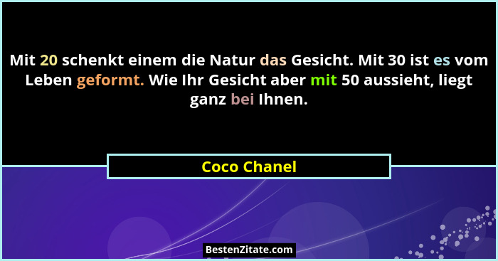 Mit 20 schenkt einem die Natur das Gesicht. Mit 30 ist es vom Leben geformt. Wie Ihr Gesicht aber mit 50 aussieht, liegt ganz bei Ihnen.