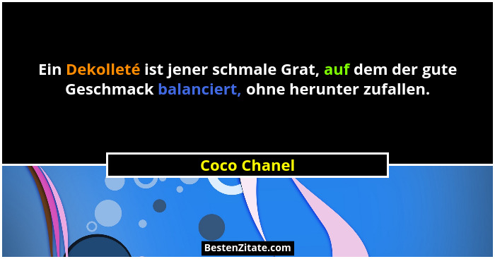 Ein Dekolleté ist jener schmale Grat, auf dem der gute Geschmack balanciert, ohne herunter zufallen.
