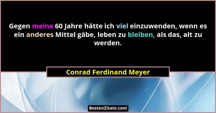 Gegen meine 60 Jahre hätte ich viel einzuwenden, wenn es ein anderes Mittel gäbe, leben zu bleiben, als das, alt zu werden.
