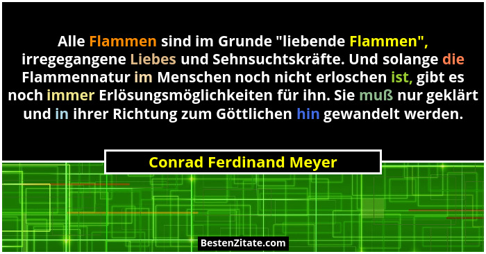 Alle Flammen sind im Grunde "liebende Flammen", irregegangene Liebes und Sehnsuchtskräfte. Und solange die Flammennatur im Menschen noch nicht erloschen ist, gibt es noch immer Erlösungsmöglichkeiten für ihn. Sie muß nur geklärt und in ihrer Richtung zum Göttlichen hin gewandelt werden.