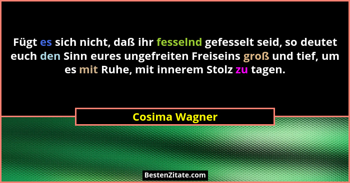 Fügt es sich nicht, daß ihr fesselnd gefesselt seid, so deutet euch den Sinn eures ungefreiten Freiseins groß und tief, um es mit Ruhe, mit innerem Stolz zu tagen.