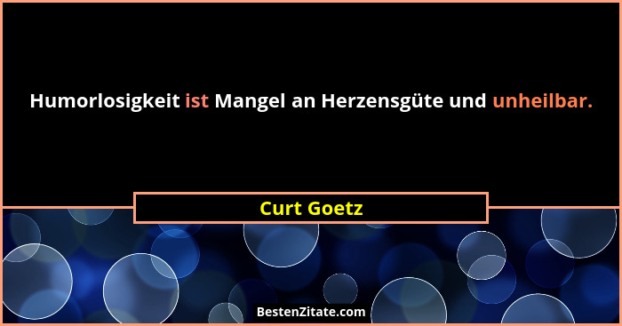 Humorlosigkeit ist Mangel an Herzensgüte und unheilbar.