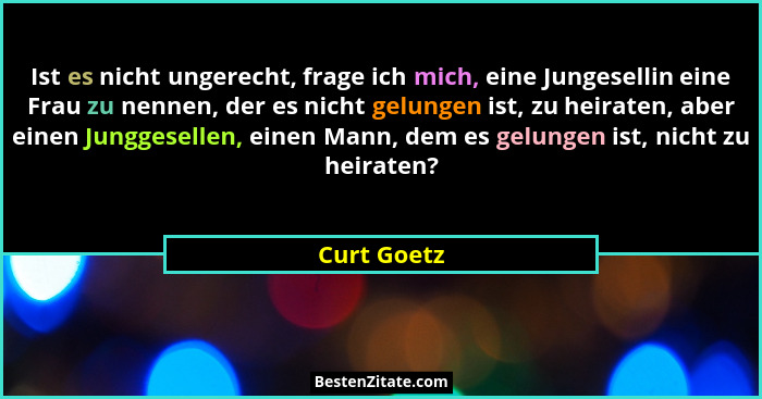 Ist es nicht ungerecht, frage ich mich, eine Jungesellin eine Frau zu nennen, der es nicht gelungen ist, zu heiraten, aber einen Junggesellen, einen Mann, dem es gelungen ist, nicht zu heiraten?