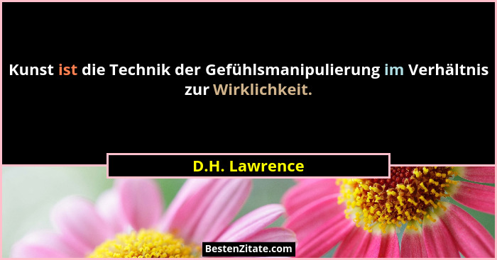 Kunst ist die Technik der Gefühlsmanipulierung im Verhältnis zur Wirklichkeit.