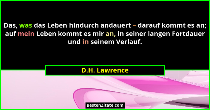 Das, was das Leben hindurch andauert – darauf kommt es an; auf mein Leben kommt es mir an, in seiner langen Fortdauer und in seinem Verlauf.