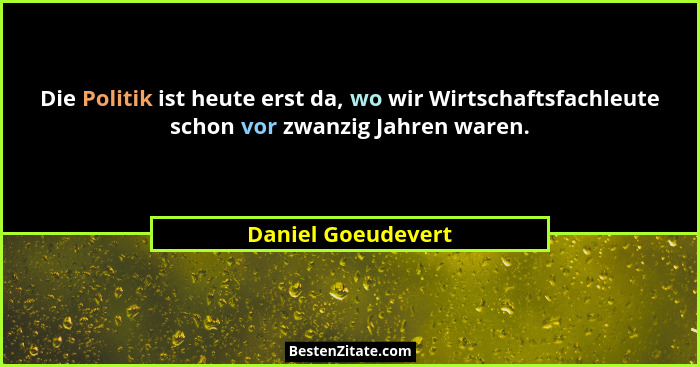 Die Politik ist heute erst da, wo wir Wirtschaftsfachleute schon vor zwanzig Jahren waren.