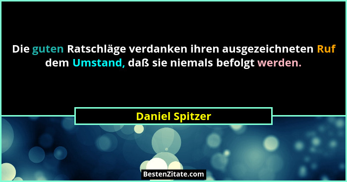 Die guten Ratschläge verdanken ihren ausgezeichneten Ruf dem Umstand, daß sie niemals befolgt werden.