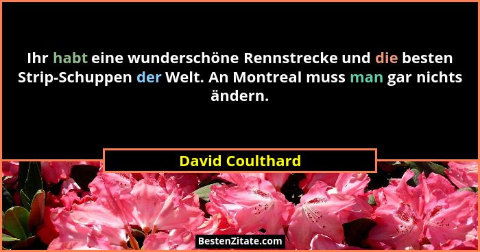 Ihr habt eine wunderschöne Rennstrecke und die besten Strip-Schuppen der Welt. An Montreal muss man gar nichts ändern.