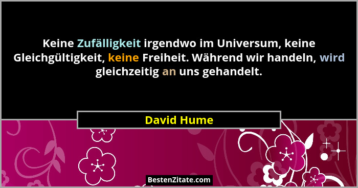 Keine Zufälligkeit irgendwo im Universum, keine Gleichgültigkeit, keine Freiheit. Während wir handeln, wird gleichzeitig an uns gehandelt.