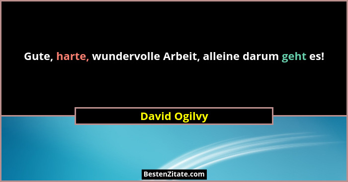 Gute, harte, wundervolle Arbeit, alleine darum geht es!