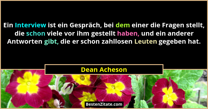 Ein Interview ist ein Gespräch, bei dem einer die Fragen stellt, die schon viele vor ihm gestellt haben, und ein anderer Antworten gibt, die er schon zahllosen Leuten gegeben hat.