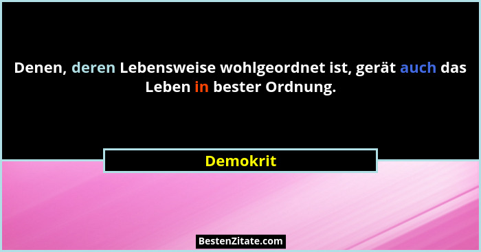 Denen, deren Lebensweise wohlgeordnet ist, gerät auch das Leben in bester Ordnung.