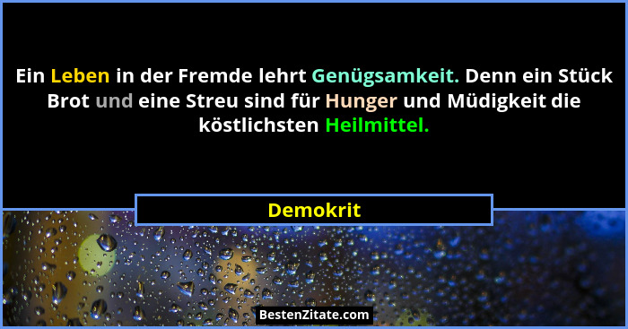 Ein Leben in der Fremde lehrt Genügsamkeit. Denn ein Stück Brot und eine Streu sind für Hunger und Müdigkeit die köstlichsten Heilmittel.