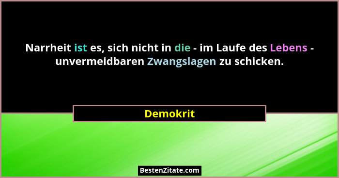 Narrheit ist es, sich nicht in die - im Laufe des Lebens - unvermeidbaren Zwangslagen zu schicken.