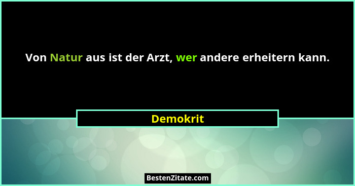 Von Natur aus ist der Arzt, wer andere erheitern kann.