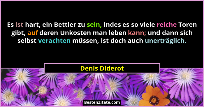 Es ist hart, ein Bettler zu sein, indes es so viele reiche Toren gibt, auf deren Unkosten man leben kann; und dann sich selbst verachten müssen, ist doch auch unerträglich.