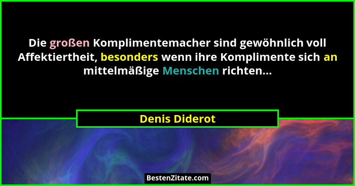 Die großen Komplimentemacher sind gewöhnlich voll Affektiertheit, besonders wenn ihre Komplimente sich an mittelmäßige Menschen richten...